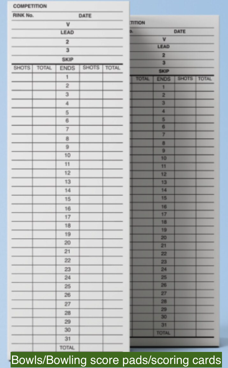 Printed text covers Competition Date Rink No 1 2 3 S Shots Total Ends up to 30.